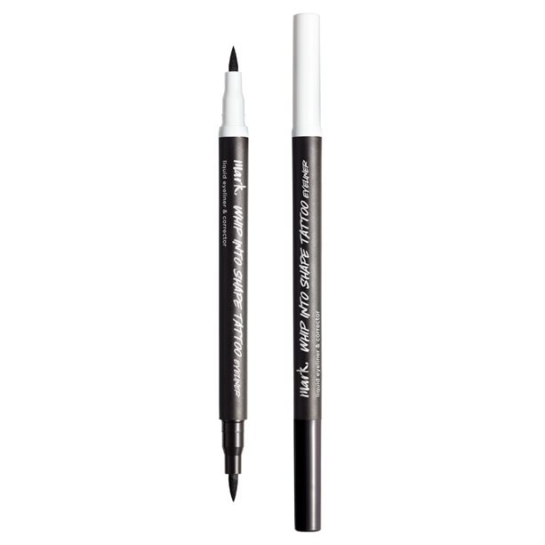 Delineador líquido 2-em-1 para olhos com ponta de precisão para linhas definidas e ponta corretora para apagar os erros.